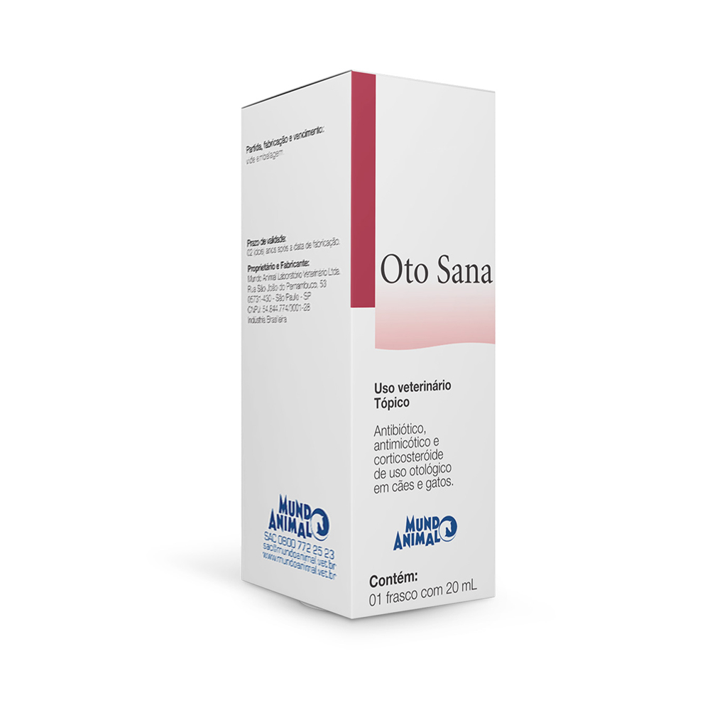 Antibiótico Oto Sana Mundo Animal 20ml – Em cães: Aplicar no conduto auditivo 4 gotas duas vezes ao dia em cães com peso inferior a 14 kg ou 8 gotas duas vezes ao dia em cães com peso superior a 14 kg.