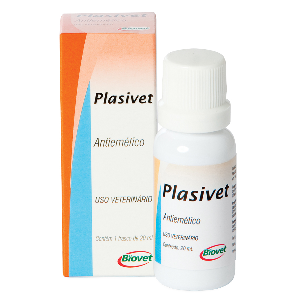 Antiemético Plasivet Biovet 20ml – deve ser administrado por via oral, 1 gota / kg de peso, que corresponde a dosagem indicada de 1mg de metoclopramida por kg de peso. Observar que 25 gotas corresponde a 1ml. Repetir se necessário após 3 a 4 horas.