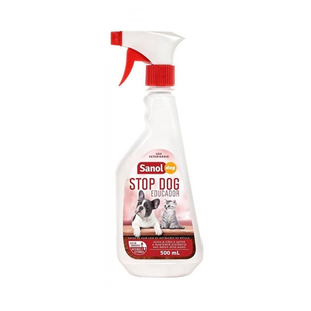 Educador Stop Dog Sanol Dog para Cães 500ml – Pulverizar o Educador Stop Dog uma ou duas vezes ao dia, no local onde não se deseja a presença ou estadia do seu cão ou gato por no mínimo três dias consecutivos. Se necessário, limpar o local ou objeto, fazê-lo com um pano seco, não devendo remover o produto enquanto sua ação efetiva. É importante não mascarar o odor com outros produtos ou alimentos. Para melhores resultados, recomenda-se a limpeza do local com eliminador de odores Sanol Dog tradicional.