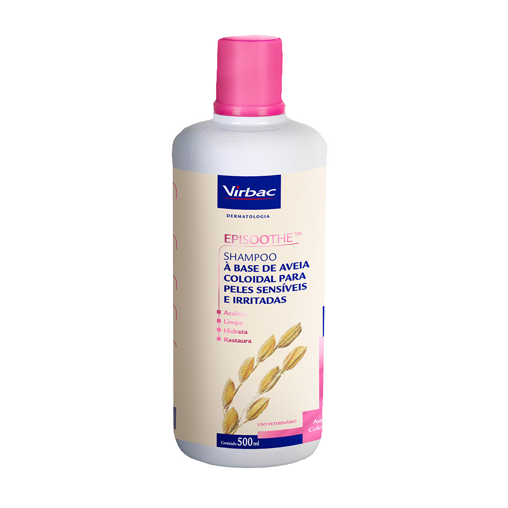 Shampoo EPISOOTHE Virbac 500ml – Aplicação deve ser feita após molhar o pelo do animal com água preferencialmente morna, aplicar a quantidade desejada de Episoothe, espalhando-o por todo o corpo. Massagear até formar espuma. Deixar que o produto permaneça na pelagem durante 10 minutos e em seguida enxaguar.
