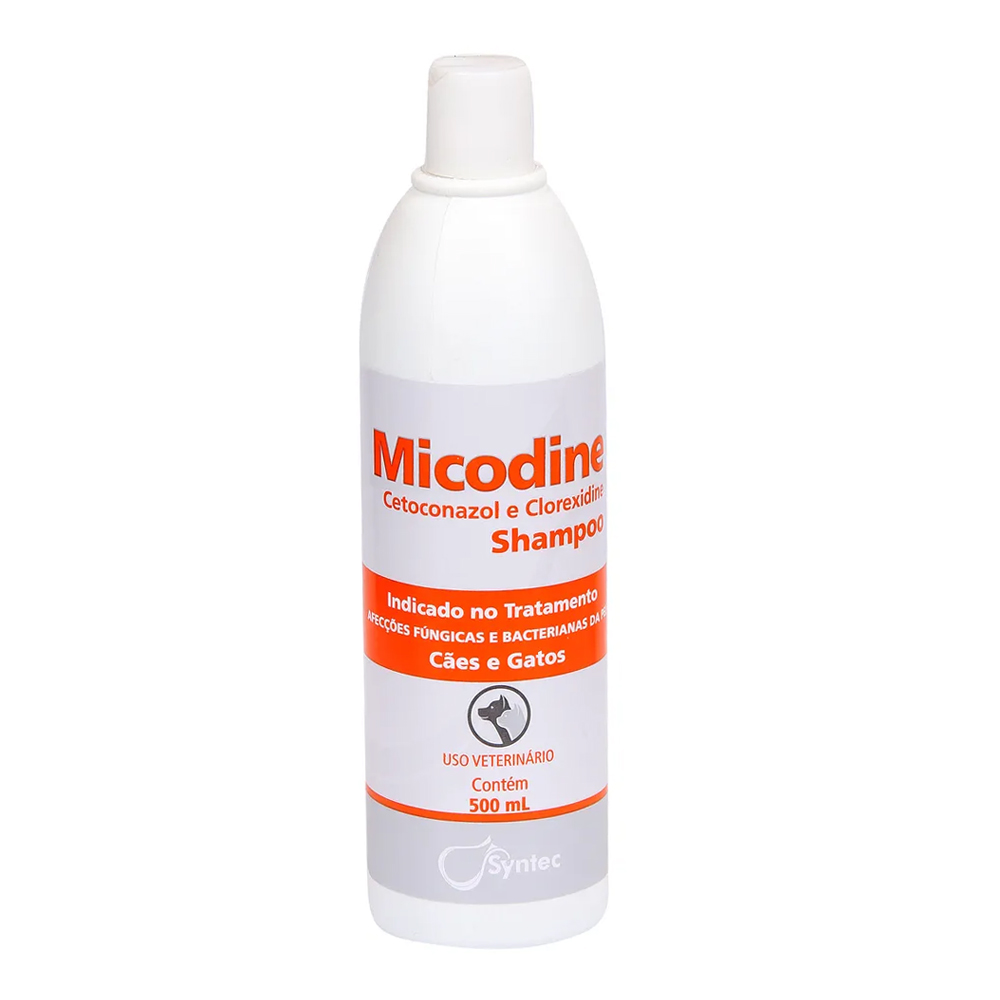 Shampoo Micodine Syntec 500ml – Aplicar uma quantidade suficiente para massagear suavemente e espalhar por todo o corpo do animal formando espuma. Deixando agir de 3 a 5 minutos e enxague. Repita a aplicação e em seguida enxaguar novamente. A frequência de aplicação pode variar de acordo com o quadro clínico de cada pet.