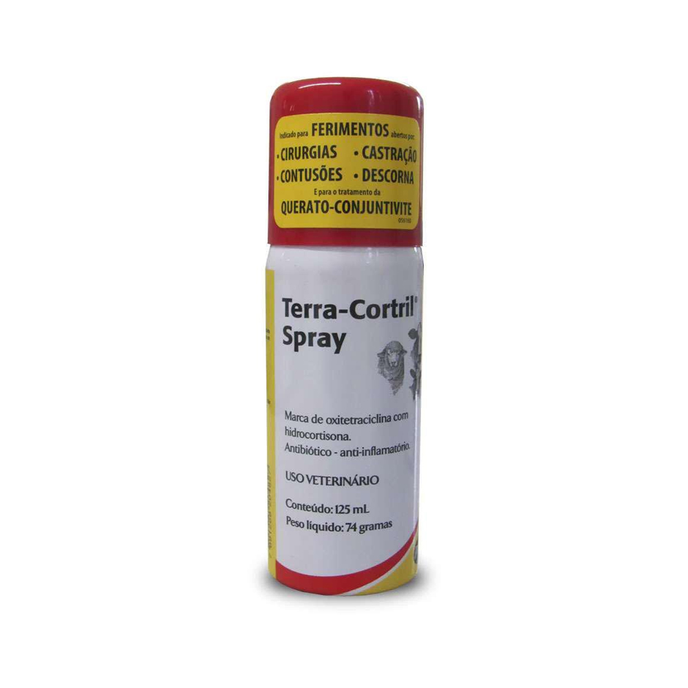 Terra-Cortril Spray Zoetis 125ml – O medicamento deve ser aplicado topicamente. Agitar antes de usar. Retirar a tampa do tubo e dirigir o orifício da válvula para o local a ser tratado e manter o tubo 10 cm de distância.